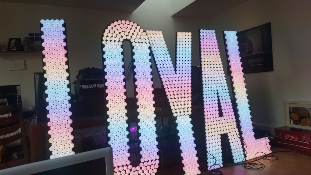 In 2016 LOYAL approached us with the prospect of working in collaboration on a light show to accompany their live performances and in doing so incidentally founded Studio A30. The LOYAL light design consists of 1600 individually addressable RGB LED bulbs that are controlled via a private wifi link and custom sound reactive software. Each letter can be placed individually using tank trap stage rigging and standard scaffold and the lights as a whole are designed to pack down into three Peli cases each below the 23kg limit for airline travel.
